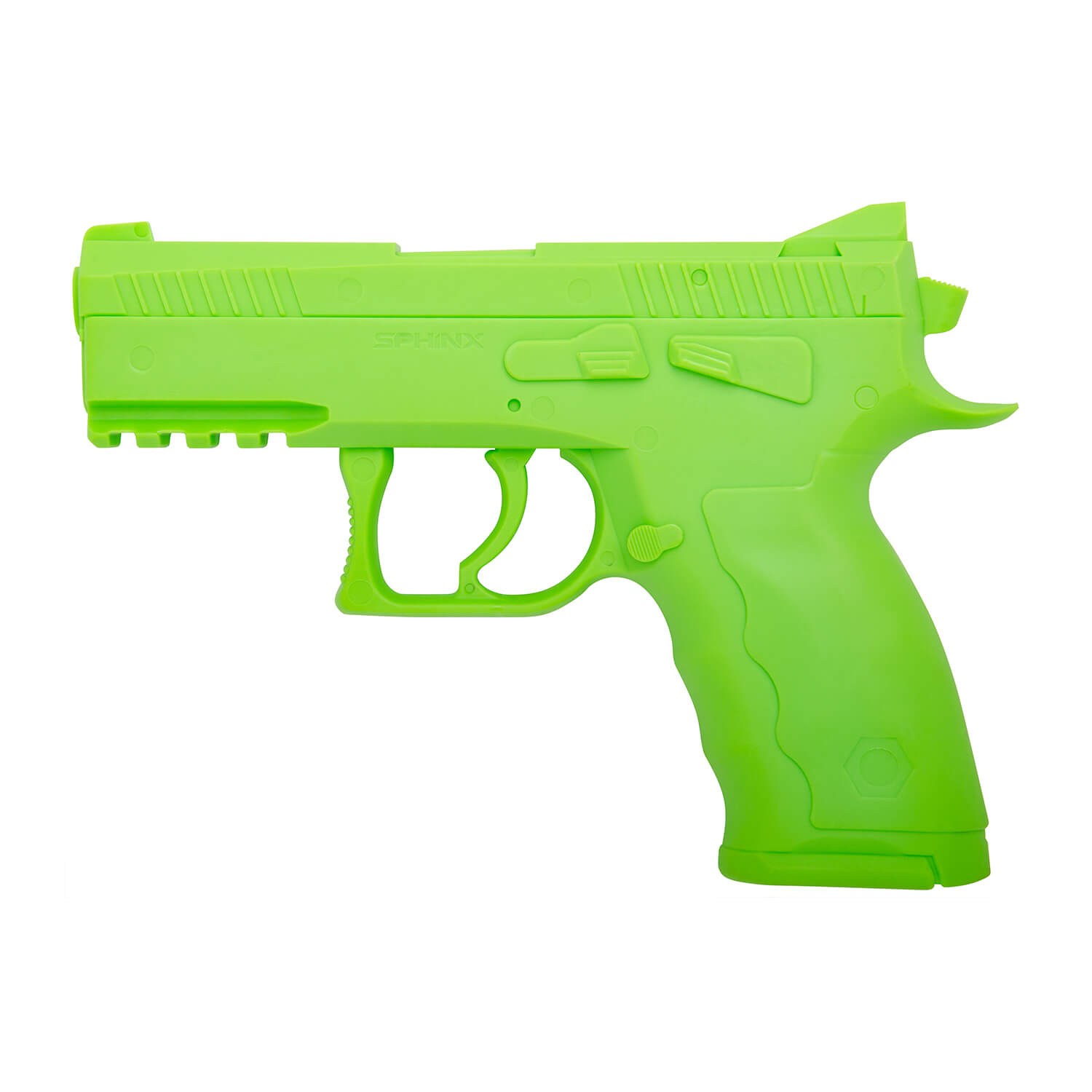 The SPHINX SDP Compact Green Replica Pistol is a 1:1 scale to the SPHINX SDP Compact Alpha. This model replica is solid thermoplastic polyurethane (TPU), making it extremely durable for training and/or holster manufacturing.